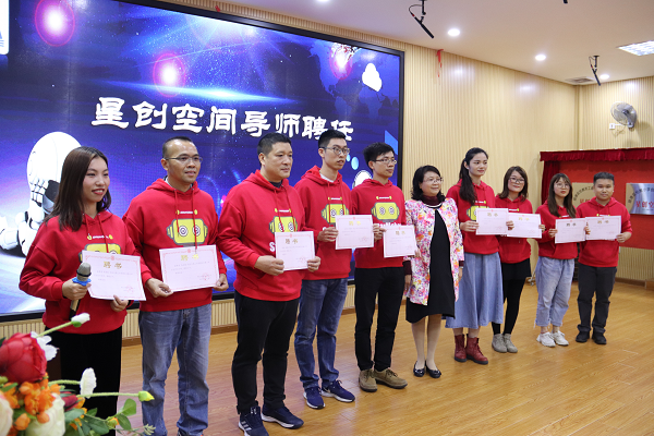 倫小星創(chuàng)空間擁有一支實(shí)力擔(dān)當(dāng)?shù)膭?chuàng)客導(dǎo)師們,郭麗華校長(zhǎng)為導(dǎo)師們頒發(fā)聘書(shū)