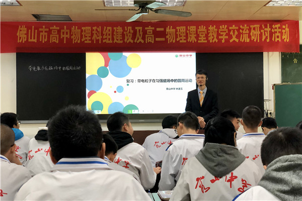 為更好地落實“立德樹人”的根本任務(wù),主動適應(yīng)我國教育教學(xué)及高考改革的新趨勢,實現(xiàn)新課標(biāo)教學(xué)目標(biāo)在課堂教學(xué)中的落地,切實提升學(xué)生的核心素養(yǎng),2019年12月11日,佛山市高中物理科組建設(shè)及高二物理課堂教學(xué)交流研討活動于我校隆重舉行。佛山市教育局教研室朱建平主任、云浮市教育局教研室黃國穎主任、廣東教育出版社朱夢華編輯以及佛山市、云浮市各校物理學(xué)科教師200多人參加了本次活動。