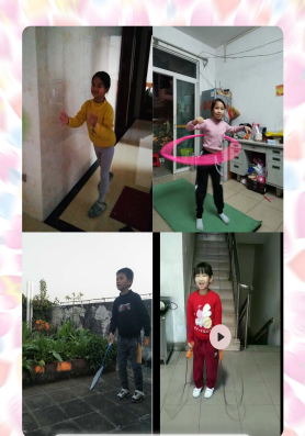 疫情面前,每天的鍛煉不可少,少年強,則國強。孩子們的居家鍛煉活動可豐富啦:學習體育老師布置的五步拳、跳舞、轉(zhuǎn)呼啦圈、打羽毛球、做瑜伽......
