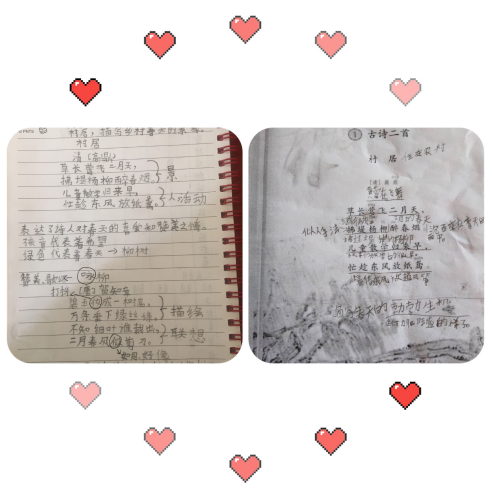 瞧,這是渝晴同學和芊澄同學邊聽課邊做的筆記。而每天晨起誦讀,或語文或英語,已經(jīng)成為渝晴同學宅家時一種習慣,天天堅持。