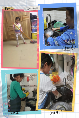 這個星期,孩子們還成了父母的小幫手,用行動報答對父母的感恩之情,幫助父母做些力所能及的家務活,掃地、拖地、洗碗、晾衣服、整理房間...品嘗到了勞動帶給長輩的那份快樂和自我成長的喜悅。