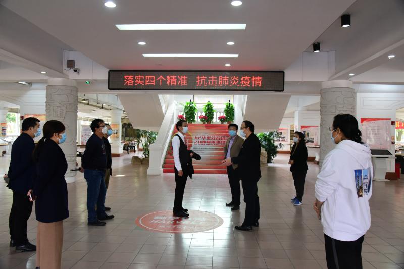檢查組一行首先在校門口接受了體溫檢測,在學(xué)校西廣場就地聽取了吳劍平校長關(guān)于學(xué)校防控新冠肺炎疫情和新學(xué)期開學(xué)準(zhǔn)備工作的工作匯報。吳劍平校長向領(lǐng)導(dǎo)詳細(xì)匯報了我校近期的防疫工作,各項人員排查數(shù)據(jù)、行政和教學(xué)骨干到崗情況、物資儲備以及學(xué)校延期開學(xué)期間部署措施和具體工作進(jìn)展情況。