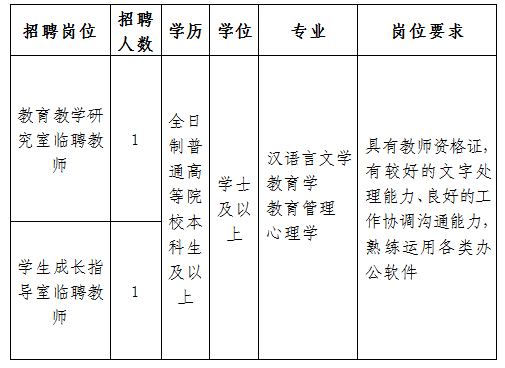 (一)招聘崗位及要求