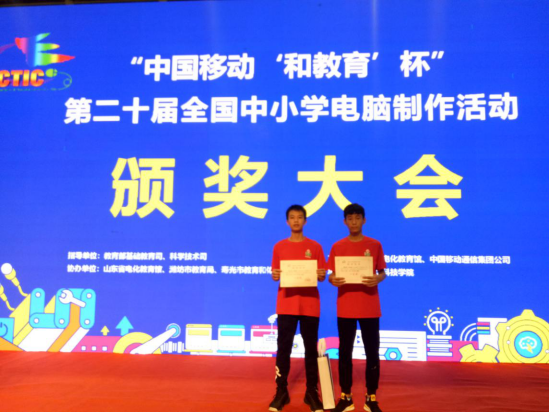 2019年7月17日至21日,由中華人民共和國教育部基礎(chǔ)教育司、科學(xué)技術(shù)司指導(dǎo),中央電化教育館主辦的第二十屆“中國移動‘和教育’杯” 全國中小學(xué)電腦制作比賽在濰坊科技學(xué)院舉行。經(jīng)過緊張激烈的角逐,我校代表隊(duì)獲得全國機(jī)器人籃球比賽初中組冠軍。