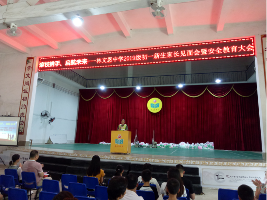 七月二十八日,透藍(lán)的天空,艷陽高照。林文恩中學(xué)禮堂人潮踴踴,2019級(jí)新生、家長(zhǎng)濟(jì)濟(jì)一堂,相聚共商教育大計(jì)。