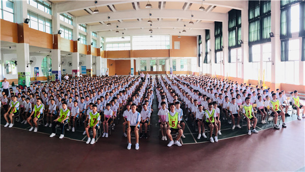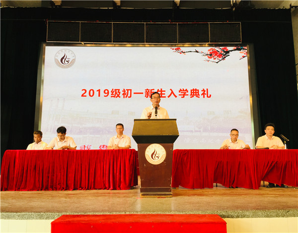 首先舉行了隆重的新生入學(xué)典禮。德育處副主任劉日華主持典禮">