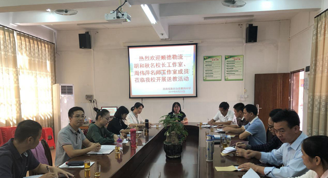 為提升教師專業(yè)成長,增進(jìn)兩校、兩地教育教學(xué)教研合作與交流。2019年9月23日,佛山市順德區(qū)勒流街道胡和秋名校長工作室、周偉萍名師工作室赴連南寨崗中學(xué)開展了一場頗有成效的送教交流活動。
