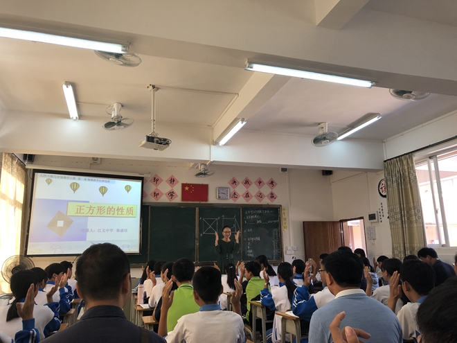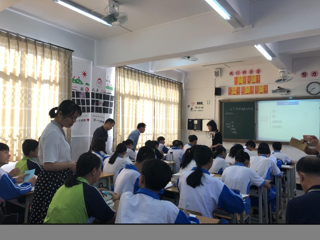 第一堂課是由吳穎芝老師執(zhí)教的北師大版九年級上冊第一章1.3.1《正方形的性質(zhì)和判定》第一課時,吳老師教態(tài)自然,語言親切,通過剪紙加深學(xué)生印象,體會到數(shù)學(xué)中圖形的奇妙。由學(xué)生小組合作進(jìn)行探究、展示思維導(dǎo)圖。吳老師注重引導(dǎo)學(xué)生進(jìn)行自主探究、發(fā)現(xiàn)從不同的角度發(fā)現(xiàn)問題并總結(jié),給學(xué)生提供充分的學(xué)習(xí)自由度,調(diào)動學(xué)生學(xué)習(xí)積極性。