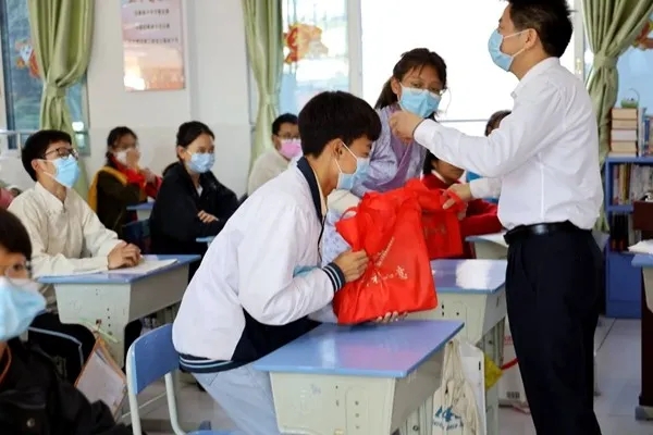 隨后,順德區(qū)區(qū)長(zhǎng)彭聰恩來(lái)到校園,慰問(wèn)了西藏班的學(xué)生,給每一位西藏班的同學(xué)帶來(lái)了新年的禮物,有課外閱讀書(shū)籍、文具和食品;并跟同學(xué)進(jìn)行親切的交談。
