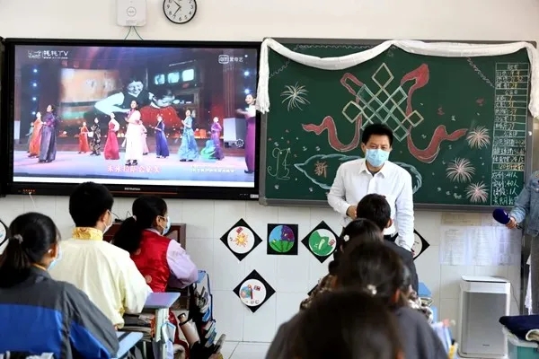 學(xué)生們一早起床后穿好了漂亮的藏服,忙碌著布置起教室、宿舍,門口掛上新的哈達(dá),黑板上寫滿了新年的祝福,跟遠(yuǎn)在西藏的家長(zhǎng)視頻拜年,祝愿家人身體健康,祖國(guó)繁榮富強(qiáng),班級(jí)的迎新活動(dòng)中,載歌載舞,用歌聲迎接藏歷鐵鼠新年的到來(lái)。