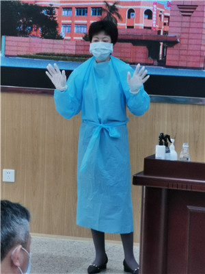 為了做好學(xué)校新冠狀病毒的防控工作,保障師生身體健康,4月21日,匯賢中學(xué)開展了全體教師開學(xué)“新冠病毒防控”專項(xiàng)培訓(xùn)。倫教社區(qū)衛(wèi)生服務(wù)中心醫(yī)療辦副主任何麗珊帶領(lǐng)她的醫(yī)療團(tuán)隊(duì),開展了主題為《新冠肺炎防控指引(學(xué)校篇)》的主題演講。 會議由學(xué)校辦公室主任鐘東旭主持,何麗珊副主任主講。何主任詳細(xì)介紹了新冠狀病毒的流行病學(xué)特點(diǎn)、預(yù)防措施、學(xué)校消毒措施及注意事項(xiàng)等,她還現(xiàn)場演示老師們七步洗手法和隔離衣的穿脫。 通過專業(yè)有針對性的培訓(xùn),達(dá)到了“知防疫、懂流程、能操作”的培訓(xùn)效果,更大力度、更加精準(zhǔn)地為確保全面復(fù)學(xué)復(fù)課,落實(shí)“兩手都要硬、兩戰(zhàn)都要贏”的要求,為校園疫情防控和有序教育教學(xué)奠定了良好的基礎(chǔ)。 何麗珊主任專業(yè)開講 現(xiàn)場演示防護(hù)服穿脫