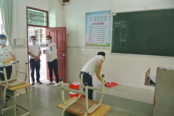 在培訓會上,黃賢軍校長首先對全校教職工進行了防控新冠肺炎知識培訓。并對學校制定的《防控新冠肺炎返校演練活動方案》進行了詳細解讀,讓每一位教師都明確了演練目的、要求、分工及熟悉具體流程。緊接著全體教職工按照各自的角色分工進行了模擬演練。演練有四項內(nèi)容:一是上學,要求師生入校消毒、測溫,當發(fā)現(xiàn)有學生體溫異常該如何處理;二是上課及午檢,要求老師要注意講臺、課桌距離,課室通風,師生防護及午檢測溫,下課洗手消毒;三是放學課室消毒,要對地面、課桌椅、門把手、講臺進行消毒,通風換氣;四是食堂用餐,教師組織學生排隊、洗手、拿餐、用餐,教師全方位的管理。演練過程中,黃賢軍校長擔任了演練總指揮掌控全局,使整個返校演練有條不紊地進行著。黃潤瓊副主任進行了旁白,引導各角色進入場景,讓演練的每一個環(huán)節(jié),環(huán)環(huán)相扣,層層推進。參加演練的人員根據(jù)預案逐一進行了演練,演練了上學時學生進校門以及發(fā)現(xiàn)發(fā)熱學生的模擬場景;演練了在課室里老師如何開展上課及午檢工作的場景;還模擬了放學了如何對課室進行消毒和在食堂用餐的場景模擬。整個演練過程緊張有序,全體教職工認真投入,達到了演練的預期目的。據(jù)悉,本次返校演練活動學校高度重視,對方案經(jīng)過了多次打磨,注意緊密貼合學校實際,各項環(huán)節(jié)安排周密,細節(jié)考慮周全。