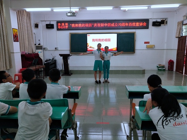 沙溪鎮(zhèn)中心小學(xué)開展“‘我和我的祖國’——慶祝新中國成立70周年”百姓宣講進(jìn)校園活動發(fā)布時間:2019-07-04 13:19 信息來源:本網(wǎng)站 瀏覽次數(shù):142