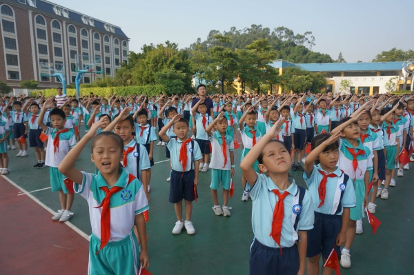 2019年9月30清晨,深情的歌聲在虎遜小學(xué)回蕩。值此新中國(guó)成立70周年之際,為進(jìn)一步加強(qiáng)學(xué)生的愛(ài)國(guó)主義教育,增強(qiáng)學(xué)生的愛(ài)國(guó)情感,中山市沙溪鎮(zhèn)虎遜小學(xué)慶祝中華人民共和國(guó)成立70周年系列活動(dòng)之“禮贊新中國(guó) 奮進(jìn)新時(shí)代”國(guó)慶活動(dòng)在學(xué)校中心廣場(chǎng)激情上演。