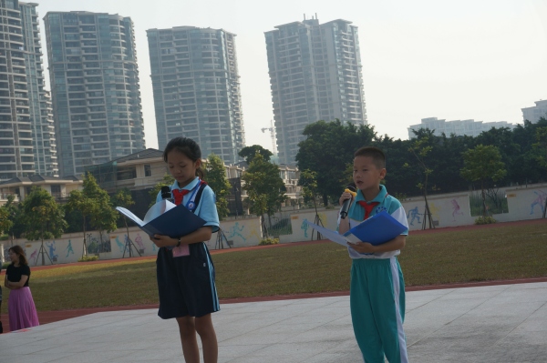 活動(dòng)最后,在主持人帶領(lǐng)下,全體師生共同呼號(hào):“祖國(guó)萬(wàn)歲!”高昂的聲音傳遞著師生們最真摯的愛(ài)國(guó)熱情,現(xiàn)場(chǎng)響起了經(jīng)久不息的掌聲和歡呼聲。接著陳晶晶同學(xué)和鄒亞辰同學(xué)給同學(xué)們帶來(lái)詩(shī)朗誦《仰望國(guó)旗》。