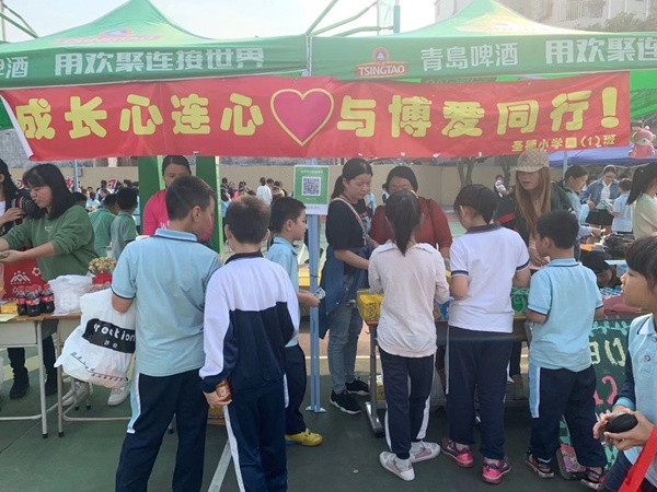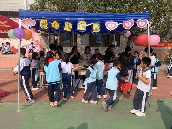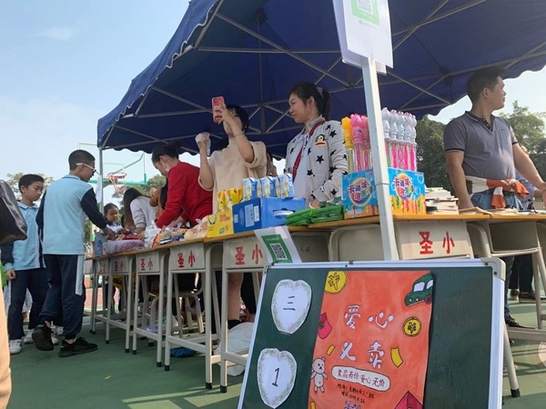 同學們對愛心義賣期盼已久了,天氣雖然炎熱,但同學們的熱情更高,在學校的球場上,每個班級的“店鋪”都布置的引人注目,三(2)班的“愛心淘淘屋”、一(1)班的“一善一美親子園”、五(2)班的“心連心小店”、五(1)班的“雜貨鋪”......每個攤位前各種叫賣用的舉牌道具一應俱全,吸引顧客的形式多樣:親子釣魚、幸運轉(zhuǎn)轉(zhuǎn)轉(zhuǎn)、幸運套圈、刮刮樂等,秩序井然,有條不紊。攤位上的商品也是琳瑯滿目,這些商品是同學們捐贈出來的書籍、學習用品、兒童玩具、手工藝品、零食、水果;還有家長們親手做的點心、蛋糕、腸仔魚蛋,自制的八寶粥、豆?jié){、糖水等等。活動中,他們個個熱情高漲,現(xiàn)場叫賣聲連綿不斷,熱鬧非凡。孩子們喊:“快來看一看吧,獻出你的愛心吧!”、“走過路過不要錯過啊,便宜賣便宜賣了!”每個攤位都圍滿了同學,各自挑選著自己喜歡的物品。操場上的吆喝聲、家長孩子選購的討論聲、淘到喜歡東西的歡笑聲絡繹不絕,現(xiàn)場氣氛十分熱烈……感人的話語時時響起,感人的情景幕幕呈現(xiàn)。同學們不僅能夠用自己的零花錢,自己的捐贈物品幫助他人,更能用實際行動幫助身邊需要幫助的人。善的種子,已然在圣獅小學每一個同學們的心中生根、發(fā)芽,終將結(jié)成愛的果實。