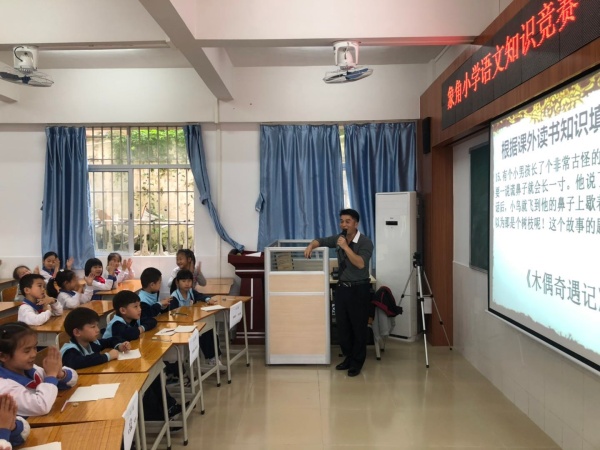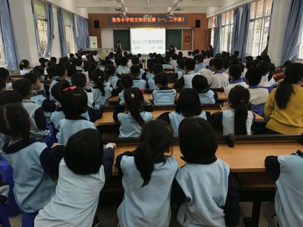 為進一步推進書香校園建設,更好地促進語文教學,檢查學生的語文基礎知識,提高學生語文素養(yǎng)水平,激發(fā)學生課外閱讀興趣,培養(yǎng)學生愛讀書讀好書的習慣。4月1號下午,象角小學舉行了“一、二年級語文知識競賽”專場活動。