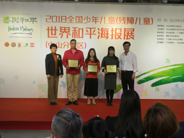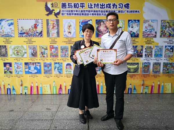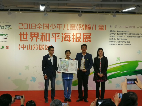 4月底,沙溪中學馬世杰老師代表沙溪中學獲獎師生赴廣州辛亥革命紀念館,參加“2018年全國少年兒童世界和平海報作品征集活動第二展區(qū)(廣東)”頒獎典禮。沙溪中學陳若璇、傅天澤同學榮獲廣東省入選作品獎,馬世杰老師榮獲優(yōu)秀指導教師獎。