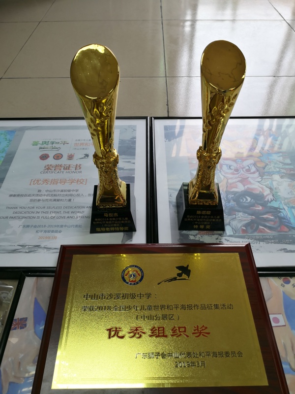 從2009年到現(xiàn)在,沙溪中學在參加《世界和平海報大賽》中,四次榮獲中山市唯一特等獎,兩次榮獲廣東省唯一特等獎,兩次榮獲全國二等獎,一次全國三等獎,一次代表中國全球總決賽,榮獲全球佳作獎,學校六次榮獲市優(yōu)秀組織獎,四次榮獲省級優(yōu)秀組織獎,省市優(yōu)秀指導教師從馬世杰、羅遠美到鐘亮幾乎每年都有。沙溪中學在參加和平海報的系列成果是沙中人的善念和對和平熱愛的執(zhí)念,通過沙中學子一幅幅作品,展現(xiàn)出來,得到社會各界的廣泛認可。