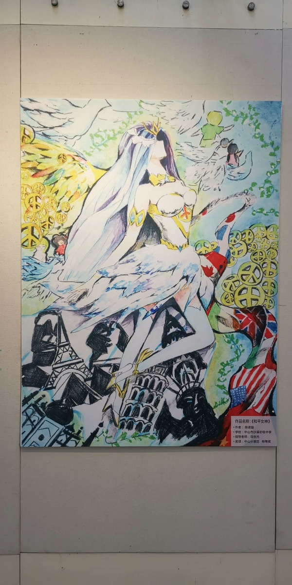 在和平海報中山展區(qū),陳若璇同學作品在上千幅作品中脫穎而出,榮獲全市唯一特等獎。沙溪中學榮獲優(yōu)秀組織獎,沙溪中學馬世杰、鐘亮、羅遠美三位老師榮獲優(yōu)秀指導教師獎,莫紹坪、傅天澤等17位學生榮獲各類獎項。作品在中山市美術館展覽,接受了中山市電視臺、中山日報、沙溪電視臺等多家媒體采訪。