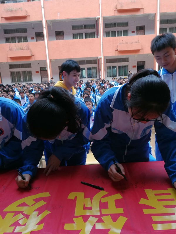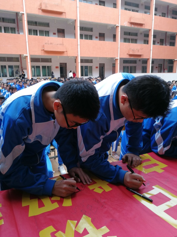 宣誓結(jié)束后,各班派代表進(jìn)行了簡(jiǎn)短隆重的“百人誓詞簽名”活動(dòng)。各班的同學(xué)代表表情嚴(yán)肅認(rèn)真,在誓詞橫幅上簽下了自己的名字,這不僅是一次簽名更是沙中學(xué)子對(duì)學(xué)校、對(duì)自己、對(duì)中考的一份莊嚴(yán)承諾!