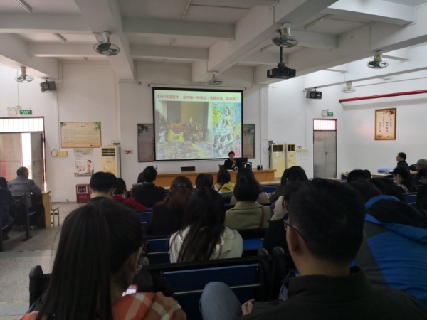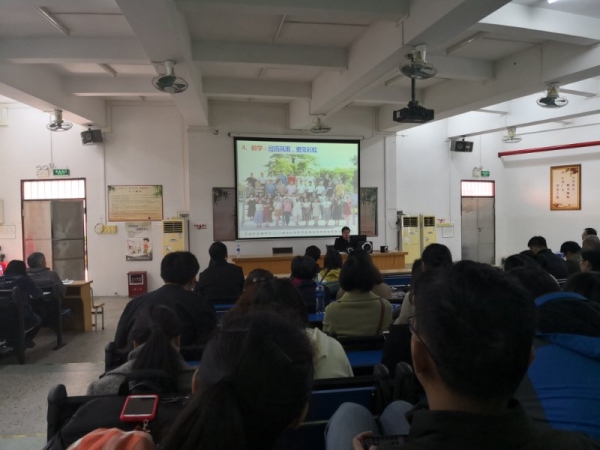 首先,華校長以“厲害了,我們的2018”為題開啟了年度總結(jié)的第一篇章。2018年,沙中的影視課程研究可謂碩果累累: 2018年1月或教育部頒發(fā)的“全國優(yōu)秀德育工作案例”, 2018年6月影視黨建課程研究獲省教廳立項,2018年8月《影視德育課程》入選北京教育出版社出版的專著《課程走向未來》。華校長表示,沙中的影視德育課程不會止步于此,而將繼續(xù)走向更好的未來。隨后,華校長用“鶴翔”、“鶴彩”、“鶴韻”、“鶴學”、“鶴師”五個詞分別總結(jié)了沙中體育、美術、音樂、教學質(zhì)量、教師成長等各方面的成就,展示了沙溪中學“鶴文化”特色教育的教學成果,其中特別多展示了去年取得優(yōu)異成績的英語科組教學上的 “神奇魔法”,使全體教師在總結(jié)中進一步提升。