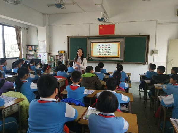 首先全體語(yǔ)文老師聆聽了李曉瑩老師執(zhí)教《千字文.天地玄黃》一課。李老師以觀看視頻的方式導(dǎo)入,引出千字文,這樣很容易地把學(xué)生帶到古文中。接著采用多種讀的形式,如:師范讀﹑學(xué)生自由﹑男女讀﹑指名讀。老師還帶領(lǐng)全班學(xué)生同桌之間按節(jié)奏拍手讀,氣氛活躍。同時(shí)在讀的過(guò)程中,教師指導(dǎo)其讀準(zhǔn)字音,發(fā)現(xiàn)不對(duì)及時(shí)糾正。李老師通過(guò)圖片和視頻的結(jié)合,指導(dǎo)學(xué)生猜文中的詩(shī)句,引導(dǎo)學(xué)生理解其深刻內(nèi)涵。并指導(dǎo)他們觀察文字的讀音講解押韻,平仄入聲的讀法,進(jìn)行吟誦,訓(xùn)練他們的韻律感,激發(fā)學(xué)生閱讀經(jīng)典的興趣,感知祖國(guó)語(yǔ)言文字的博大精深,熱愛祖國(guó)文字并從中受到熏陶。以四人小組合作交流吟誦,學(xué)生人人參與到其中,整堂課的氣氛再一次提升。緊接著由錄音引出另一種讀法——傳唱,最后熟讀成誦。整個(gè)課堂教學(xué)教師與孩子們的交流緊湊,節(jié)奏明快!親切的語(yǔ)言讓學(xué)生投入到學(xué)習(xí)中,讓學(xué)生樂(lè)于接受,樂(lè)于學(xué)習(xí)。