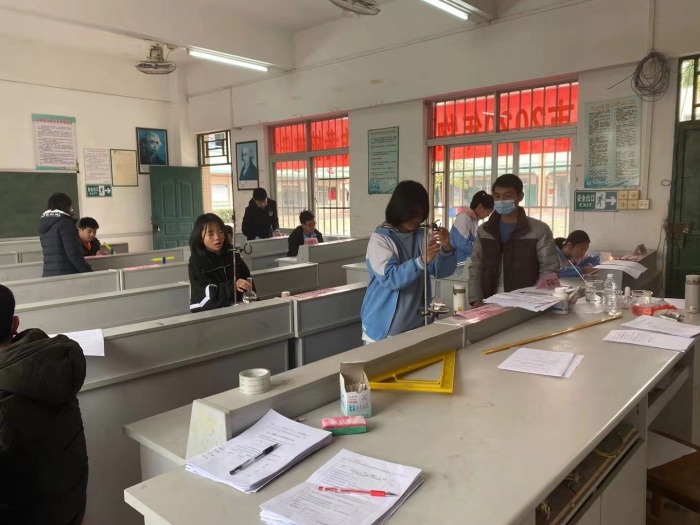 為準(zhǔn)備此次物理實驗考核,在實驗操作考核前一個月,教導(dǎo)主任韋紹祖對物理實驗操作考核的物理教師,考務(wù)員專門召開會議,作出了工作步署。理綜組組長范修益老師組織全校物理教師,從九道實驗題中選出六道實驗操作考核題,討論并制定了實驗操作考核的具體方案??己饲?,積極訓(xùn)練各班學(xué)生熟悉實驗考核流程,規(guī)范學(xué)生考試紀(jì)律;認(rèn)真布置實驗操作考場,在考場懸掛橫幅,黑板上書寫“實驗操作考核須知”;實驗臺貼“實驗標(biāo)簽”(實驗序號、名稱),便于學(xué)生對號入座。為讓考生準(zhǔn)確掌握時間,每個考室還準(zhǔn)備一個鐘表計時。