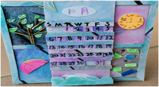 四年級孩子制作的年歷和臺歷精彩紛呈,美不勝收,像一件件精美的藝術品,引得師生駐足瀏覽,被深深地吸引住。五年級孩子做的統(tǒng)計概率的轉盤也惟妙惟肖,小巧精致,實用性很強。六年級孩子制作的是長方體、正方體和圓柱以及畫了它們的展開圖。孩子們不僅運用了所學的立方體知識,還表現(xiàn)出對數(shù)學濃厚的興趣。