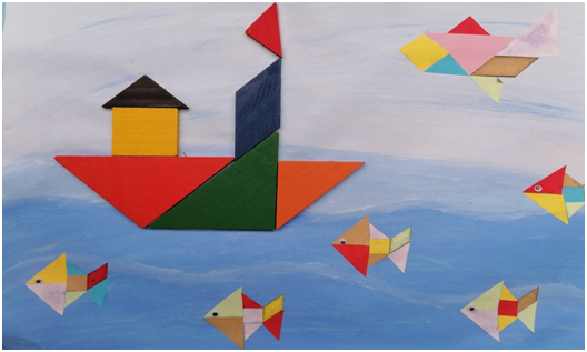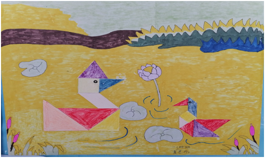 一年級孩子積極動腦,充分發(fā)揮自己的想象力和創(chuàng)造力,用七巧板拼出各式各樣的圖案來。有的拼成了一只可愛的小貓,有的拼成了一艘遠航的帆船,有的拼出了狐貍和烏鴉的故事,有的拼出了守株待兔的故事。簡單的七巧板在孩子們手中拼出了豐富多樣的圖案。二年級孩子制作的是軸對稱圖形。孩子們充分發(fā)揮想象力,用不同顏色的卡紙巧妙搭配,剪一剪,拼一拼,涂一涂,一件件精美的作品就此產(chǎn)生。有豐收的秋天,有海底世界,有幸福的溫馨之家。三年級孩子制作的時鐘具有較高的欣賞和實用價值。時鐘造型獨特、千奇百怪,制作精美。你瞧——有的把鐘表設計成動物的形狀,有的在時鐘上繪制各種精美圖案,真讓人贊嘆不已!