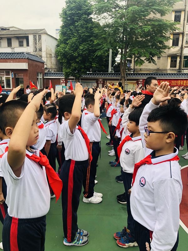 13日早上第一節(jié)課,在煙墩校區(qū)操場上,舉行 2020學年第一批新生入隊儀式。一、二、三年級全體師生參加活動。