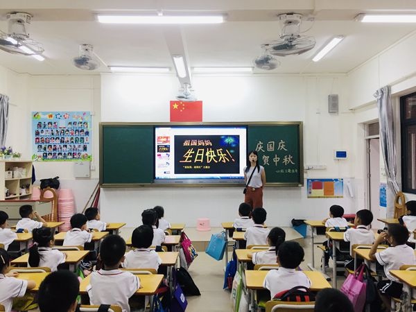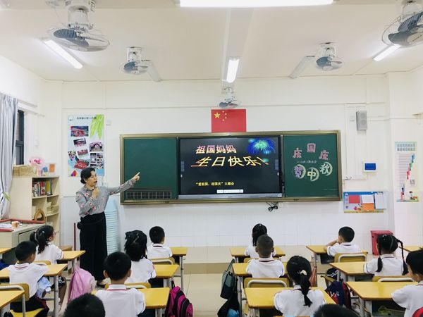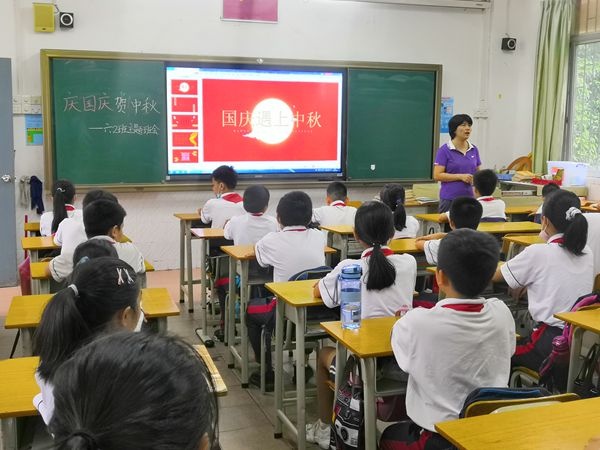 上課鈴聲響起,石岐高家基小學(xué)舉行了莊嚴(yán)的升旗儀式,五星紅旗在高家基學(xué)子嘹亮的國歌聲中緩緩升起。升旗儀式結(jié)束后,各班有序地回到教室,開展“慶國慶 迎中秋”的主題班會(huì)。