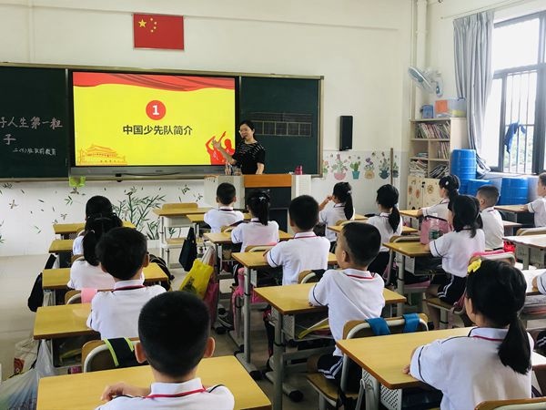 中國(guó)少年先鋒隊(duì)是中國(guó)少年兒童的群眾組織,是少年兒童學(xué)習(xí)共產(chǎn)主義的地方,是建設(shè)社會(huì)主義和共產(chǎn)主義的預(yù)備隊(duì)。為了使一、二年級(jí)新同學(xué)加深對(duì)中國(guó)少年先鋒隊(duì)的了解,幫助他們明確入隊(duì)的意義,培養(yǎng)他們對(duì)少先隊(duì)的情感,做好入隊(duì)的準(zhǔn)備,9月14日上午,髙家基小學(xué)大隊(duì)部組織一、二年級(jí)中隊(duì)輔導(dǎo)員對(duì)新生進(jìn)行隊(duì)前教育。