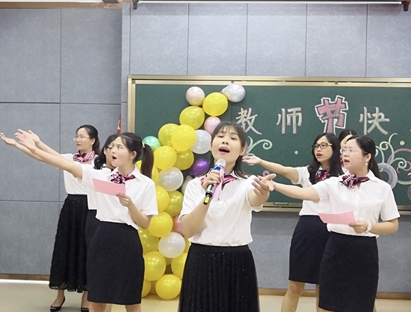 活動開始,由黃榮勝校長當場致辭。黃榮勝校長談到:“教師的職業(yè)是崇高的、神圣的,但也面臨著嚴峻的挑戰(zhàn)。作為一名教師,責任感是師德的核心,同時我們也要努力成為新時代的‘四有’教師。”緊接著,全體教師以年級組為單位為大家送上了精彩絕倫,趣味橫生,形式多樣的節(jié)目和游戲。他們利用工作之余的時間抓緊排練,在短短的時間內呈現(xiàn)了一個生動有愛的舞臺。表演的過程充滿了歡聲笑語,掌聲此起彼伏,教師們演得開心,心里也美滋滋的。最后,大家共同評選出最喜愛的節(jié)目,并由黃榮勝校長與蘇鳳群副校長為獲獎的隊伍頒獎。慶祝活動進入尾聲,全體教師為教師節(jié)獻唱《明天會更好》?! ?/p>
