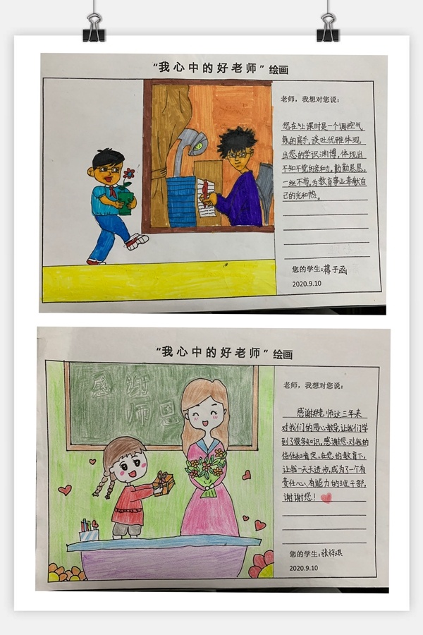 教師不忘初心,立德樹人,學生們更難忘師恩。學校開展了以“我心中的好老師”為題的繪畫活動,學生們紛紛畫出了他們心目中老師的模樣,并為老師寫上了滿滿的祝福與感謝。與此同時,學校的學生禮儀隊一早便整齊站立于校門口,手捧鮮花,代表全體學生為老師們送上節(jié)日的祝福。學生滿滿的祝福與感恩聲讓整個校園充滿了溫馨與愛。