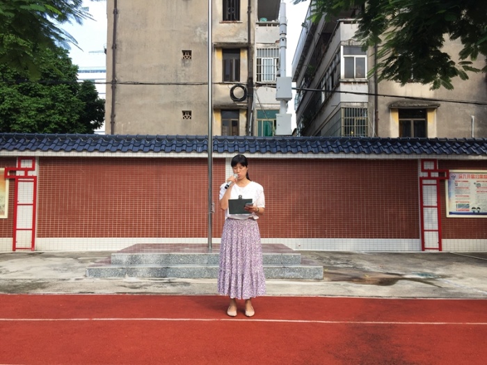 上午8點10分,全體師生高唱《義勇軍進行曲》,在響亮的歌聲中,鮮艷的五星紅旗冉冉升起。隨后,三(1)班的學生代表進行了“勤儉節(jié)約”為主題的國旗下講話,接下來吳嬋娟主任號召全體同學厲行節(jié)約,從我做起,從一日三餐做起,勸導同學們要珍惜每一粒米,讓“光盤”成為時尚,堅決杜絕“舌尖上的浪費”,大力培育文明、健康、科學、節(jié)儉的生活新風尚。