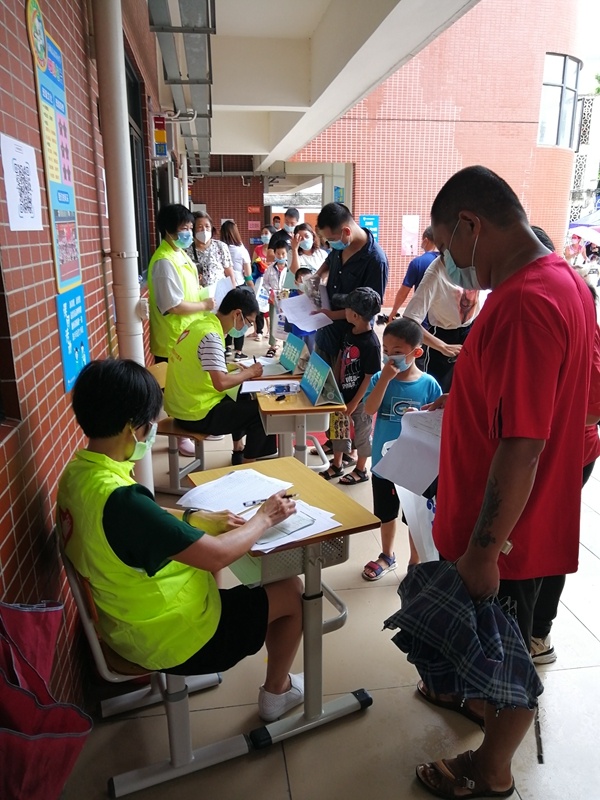 8月1日上午8點(diǎn)30分,石岐高家基小學(xué)新生注冊報(bào)名工作準(zhǔn)時(shí)開始。為做好疫情防控工作,譚均和主任與三名義工家長在校門口引導(dǎo)新生家長及新生測量體溫,家長與學(xué)生有序進(jìn)入校園。義工家長引導(dǎo)新生家長與學(xué)生進(jìn)入相應(yīng)教室提交資料,蘇鳳群副校長等行政及教師核實(shí)資料、發(fā)放表格并指導(dǎo)新生家長填寫表格。緊接著,吳嬋娟主任及5名義工家長引導(dǎo)新生到相應(yīng)教室進(jìn)行面談,相關(guān)教師與新生進(jìn)行交流。最后,梁秋霞主任及黃曉毅老師負(fù)責(zé)回收表格,確認(rèn)注冊。在各級行政、教師、義工家長的配合引導(dǎo)下,石岐高家基小學(xué)高效、順利地完成了新生注冊報(bào)名工作。