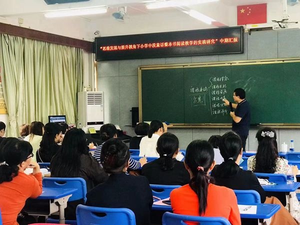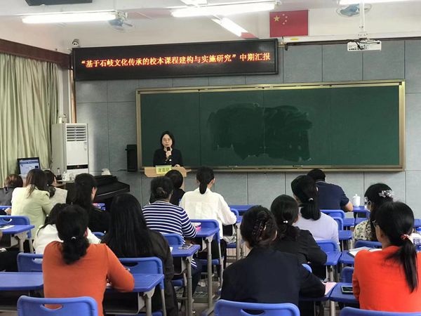 接著是兩個(gè)課題的主持人分別進(jìn)行中期研究匯報(bào)。鄭結(jié)霞校長主持“基于石岐文化傳承的校本課程建構(gòu)與實(shí)施研究”這個(gè)課題。她從課題研究概述、前期研究基礎(chǔ)、中期研究狀況和后期研究思路四個(gè)方面進(jìn)行了詳盡匯報(bào),既展示了課題研究的研究成果,更展示了她的管理情懷。田雅老師主持“思維發(fā)展與提升視角下小學(xué)中段童話整本書閱讀教學(xué)的實(shí)踐研究”課題,她人從課題研究背景、研究思路、階段性研究成果、研究效果、問題展望五個(gè)方面匯報(bào)了課題進(jìn)展,提出了課題研究的困惑。