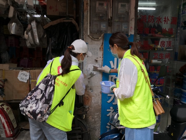 志愿者們利用鏟刀、鋼絲刷、噴壺等工具,認(rèn)真細(xì)致地將道路兩側(cè)視野內(nèi)的路燈桿、公交站牌、沿街墻(樓)體、樹干上等各類亂貼亂畫、小廣告進(jìn)行全面清理;現(xiàn)場發(fā)現(xiàn)張貼、噴涂行為的人,志愿者會對他們積極教育宣講。在大家的努力下,清除墻體廣告、“牛皮癬”多處。