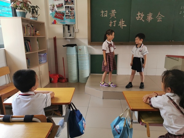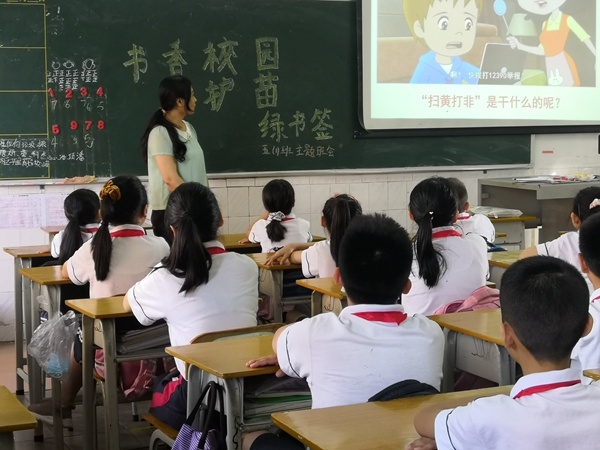 此次“掃黃打非”活動(dòng)的開展分為幾個(gè)部分進(jìn)行:一、召開以“書香校園·護(hù)苗·綠書簽”為題的主題班會(huì)活動(dòng)。班會(huì)課上,班主任帶領(lǐng)學(xué)生通過觀看視頻、參與師生交流互動(dòng)、共同參與“我承諾”等活動(dòng)了解學(xué)習(xí)“掃黃打非”的重要內(nèi)容。此外,班主任再次強(qiáng)調(diào)“掃黃打非”的重要性,為學(xué)生提高安全意識(shí),爭做文明守紀(jì)的新時(shí)代好少年提供了豐富的思想源泉。二、開展“掃黃打非”故事會(huì)活動(dòng)。學(xué)生通過課前查閱相關(guān)資料,課上分享身邊故事的形式交流身邊所見所聞。故事會(huì)上,“小故事家”講得津津有味,抑揚(yáng)頓挫,“小觀眾”聽得認(rèn)真、出神,講完后同學(xué)們還會(huì)圍坐交流感想,暢談“掃黃打非”的必要性與重要性。三、共學(xué)“掃黃打非”常識(shí)。學(xué)校根據(jù)學(xué)生的年齡特點(diǎn),在校園宣傳欄處刊登通俗易懂的常識(shí),學(xué)生們紛紛圍上前去閱讀、學(xué)習(xí),并進(jìn)行分享交流。
