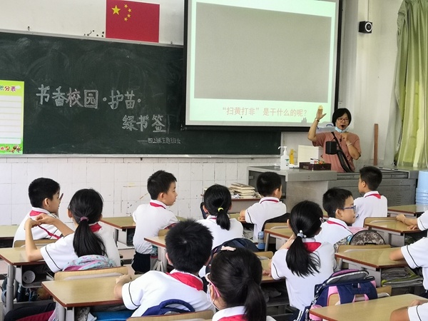 6月29日,石岐高家基小學(xué)開展以“書香校園·護(hù)苗·綠書簽”為主題的掃黃打非活動(dòng)。此次活動(dòng)的開展旨在進(jìn)一步強(qiáng)化“掃黃打非”切實(shí)保護(hù)青少年的身心健康,營造積極陽光的校園學(xué)習(xí)氛圍。