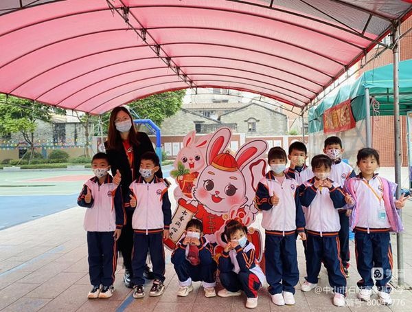 伴隨著背景音樂(lè)《兔子舞》,在馬偉萍主任的精心組織下,行政們走上舞臺(tái),為同學(xué)們送上兔年的祝福。屬相“兔子”的6名老師也上臺(tái)為大家送祝福,贏得了一陣陣的掌聲;梁校長(zhǎng)等行政和屬兔的老師們分發(fā)給同學(xué)們一些白兔糖,寓意兔年甜甜蜜蜜、夢(mèng)想如意。