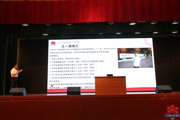 本次家長(zhǎng)會(huì)由大信學(xué)校德育處崔士強(qiáng)主任主持,崔主任首先代表學(xué)校對(duì)各位參會(huì)的家長(zhǎng)們表示最熱烈的歡迎。接著介紹了2015屆優(yōu)秀畢業(yè)生王一諾和鐘俊權(quán)同學(xué)。這兩位學(xué)霸2015年7月份畢業(yè)于大信學(xué)校,同年9月份入讀中山市紀(jì)念中學(xué)初中部。王一諾參加中學(xué)生理化學(xué)科能力展示分別獲得數(shù)、理、化廣東省一等獎(jiǎng),2019年5月舉辦的全國(guó)中學(xué)生生物學(xué)聯(lián)賽獲省一等獎(jiǎng),并以全省第一名的成績(jī)?nèi)脒x省隊(duì),2019年8月舉辦的第28屆全國(guó)中學(xué)生生物奧林匹克競(jìng)賽中獲得金牌,入選國(guó)家集訓(xùn)隊(duì),在高一即被清華大學(xué)錢學(xué)森班提前保送錄取。鐘俊權(quán)2018年中考以499分高分考入中山市紀(jì)念中學(xué)高中部。在這期間他多次參加全國(guó)青少年信息奧林匹克競(jìng)賽,并獲得一等獎(jiǎng)好成績(jī)。2019年獲北京大學(xué)無條件簽約一等協(xié)議,可申請(qǐng)保送北京大學(xué)。