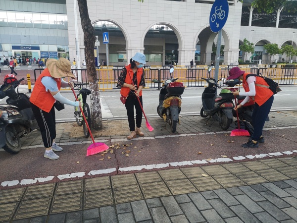 當(dāng)天上午8時(shí)20分,開發(fā)區(qū)第三小學(xué)16名志愿者教師在學(xué)校黨支部宣傳委員吳書麗主任的帶領(lǐng)下,對(duì)輕軌中山站門口周邊路段進(jìn)行大掃除,開展環(huán)境清潔工作。經(jīng)過(guò)一個(gè)上午的共同努力,站前路段被清理得整潔干凈,其面貌煥然一新,公共秩序更加井然。