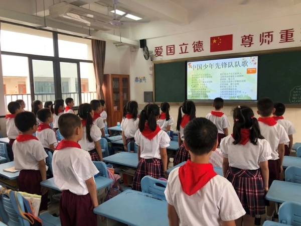 在課堂上,同學(xué)們認(rèn)真地聆聽老師的講解,通過學(xué)習(xí)少先隊(duì)的歷史,激勵(lì)同學(xué)們從小就要養(yǎng)成良好的行為習(xí)慣,一起努力爭(zhēng)做合格的共產(chǎn)主義接班人。接著,學(xué)習(xí)自己佩戴紅領(lǐng)巾、正確佩戴好隊(duì)徽,嘹亮的中國(guó)少年先鋒隊(duì)隊(duì)歌在校園里回蕩。