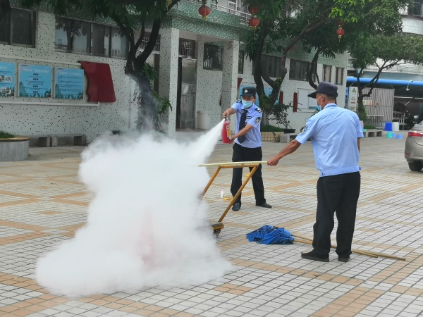 培訓伊始,學校安全專干吳計亮老師結合學校消防工作的實際情況,和老師們講解了校園學習生活中如何防火、發(fā)生火災后如何報警、如何自救逃生和如何使用消防器材等與日常生活密切相關的各類消防知識。隨后,全體教師集中校門口空地,吳老師給全體教職工講解干粉滅火器的使用技巧以及如何利用滅火器、撲滅火源的知識,并分成若干小組用滅火器進行實踐演練。