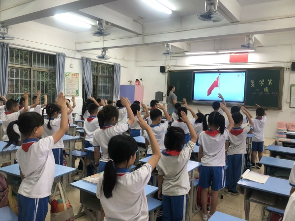 早上7:00,同學們陸陸續(xù)續(xù)踏進校園,在老師和“大腳丫”的指引下,有序地回到了班級。8:50,胡校長來到各班級,向同學們派發(fā)復學禮物——書簽,勉勵同學們好好學習,將來報效祖國。上午第一節(jié),班主任在教室內組織進行復學后的第一次升旗儀式。同學們面向國旗,敬隊禮,唱國歌。接著,一至三年級觀看復學第一課《天使歸來,英雄開講》,在視頻中感悟當代國人的愛國情懷與責任擔當,致敬挺住風雨的堅強脊梁。隨后,班主任根據《在校一日生活指南》,指導同學們正確佩戴口罩和七步洗手法等個人防護知識。