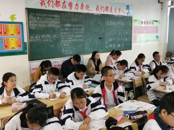 開平教育同仁不顧長途勞累,一下車,分科組,便走進開發(fā)區(qū)一中的課堂,分別聽了鄭澤梅老師的《分式的乘除法》初二數(shù)學(xué)課、高東霞老師的《unit 8》初二英語課、黃慧老師的《北魏政治和北方民族大交融》初一歷史課、周四文老師的《建設(shè)法治中國》初三道德與法治課、鐘朝暉老師的《二氧化碳的性質(zhì)》初三化學(xué)課、劉華利老師的《校園寫生或(水墨肌理)》初二美術(shù)課、黃俊杰老師的《鑒賞沃爾塔瓦河》初二音樂課。
