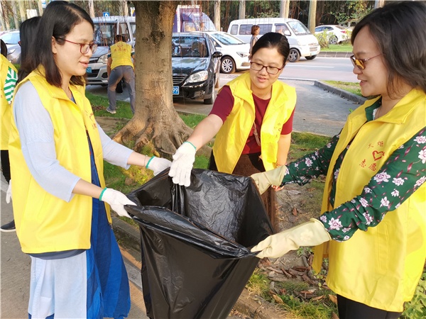 師生志愿者們用辛勤的汗水為社區(qū)、校內外清潔工作做出貢獻,為扮靚校園迎接新中國成立七十周年做了實事好事。他們的行動推進了人居環(huán)境整治工作,進一步優(yōu)化美化火炬區(qū)的人居環(huán)境。那一群“黃馬甲”“紅馬甲”,是世紀一路、開發(fā)區(qū)全民健身廣場、健康花城社區(qū)里最美的風景。