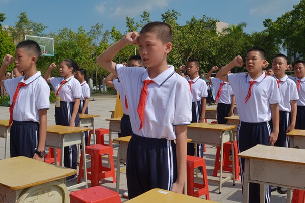 在初一(1)班莫藝凡同學(xué)帶領(lǐng)下,全級(jí)同學(xué)齊誦《自主教育賦》。接著宣誓《成長(zhǎng)誓詞》,“成人是我自己的事,成才是我自己的事。自治、自學(xué)、自評(píng),對(duì)自己的行為負(fù)責(zé)。今天有理想、負(fù)責(zé)任,未來有擔(dān)當(dāng)、有作為”的誓言響徹云霄,拉開此次結(jié)營(yíng)儀式的序幕。